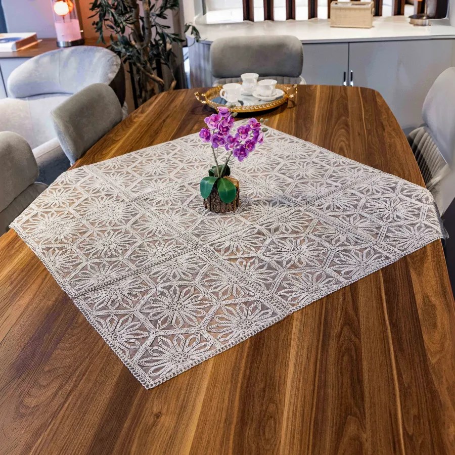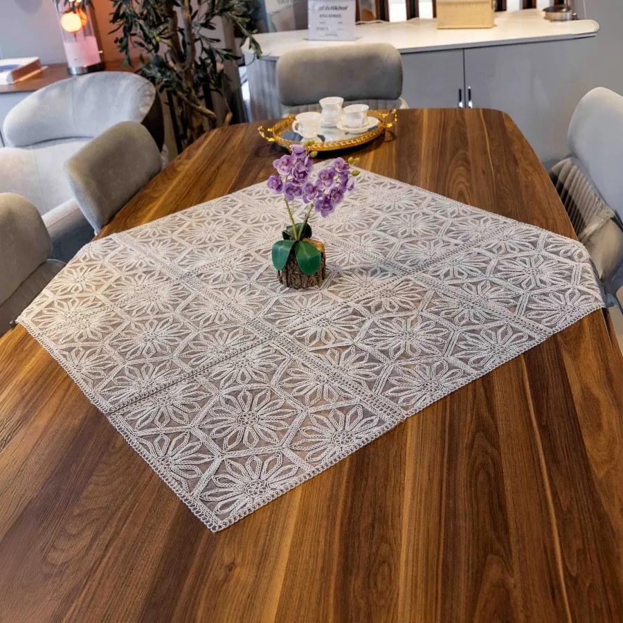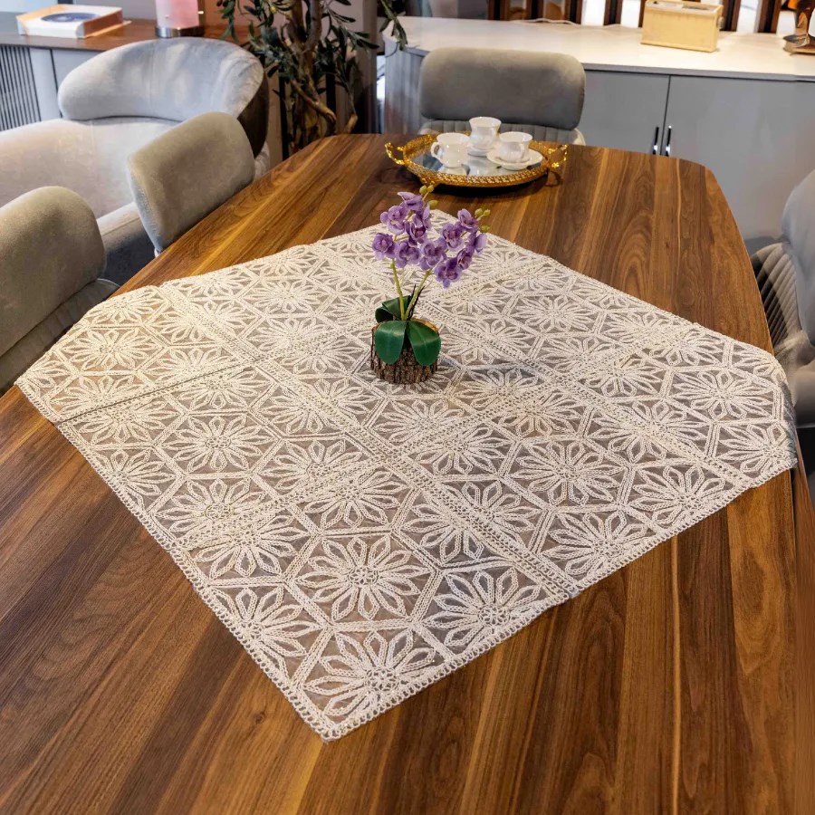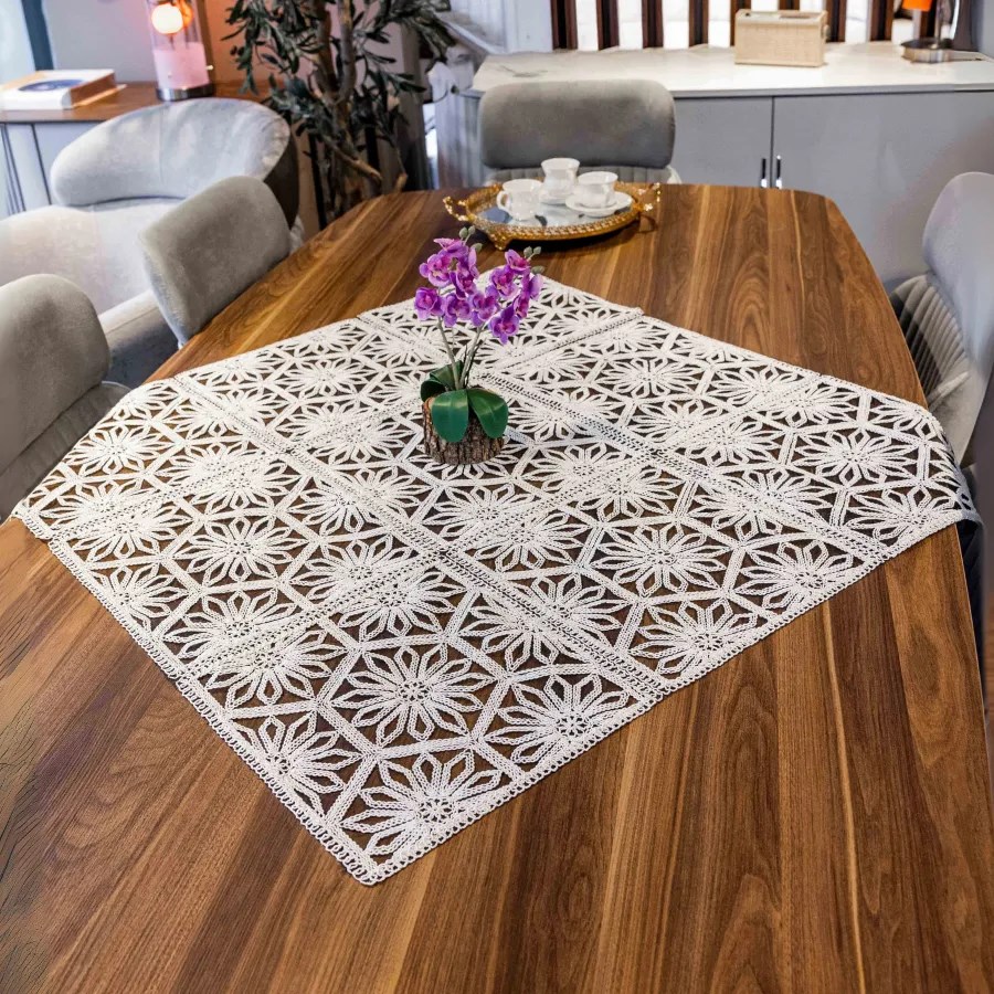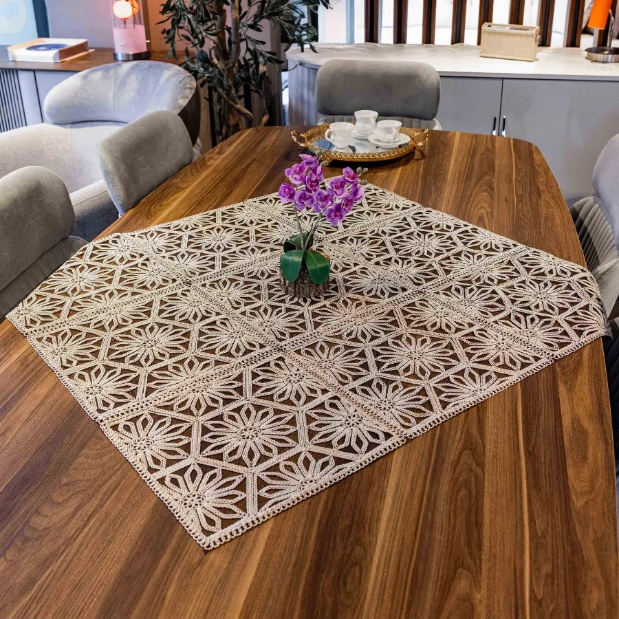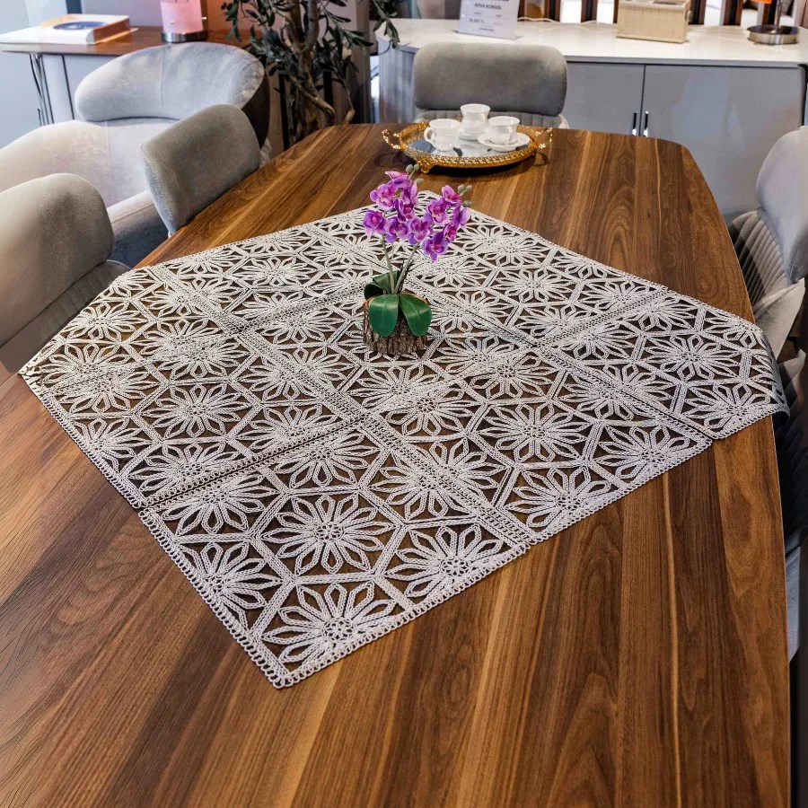 Evinize şıklık katacak Altıgen Fiskos Örtüsü, zarif tasarımı ve modern görünümüyle misafirlerinize özel bir hava katar. Masa üstlerinde, sehpalarda ya da dekoratif amaçlı kullanım için ideal olan bu örtü, kaliteli kumaşı sayesinde uzun ömürlüdür.