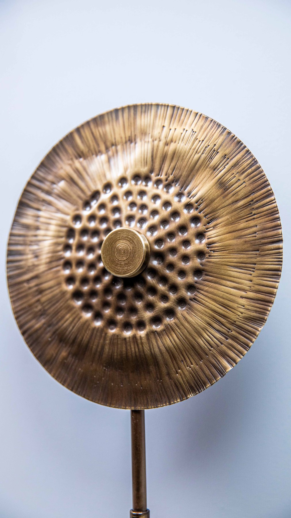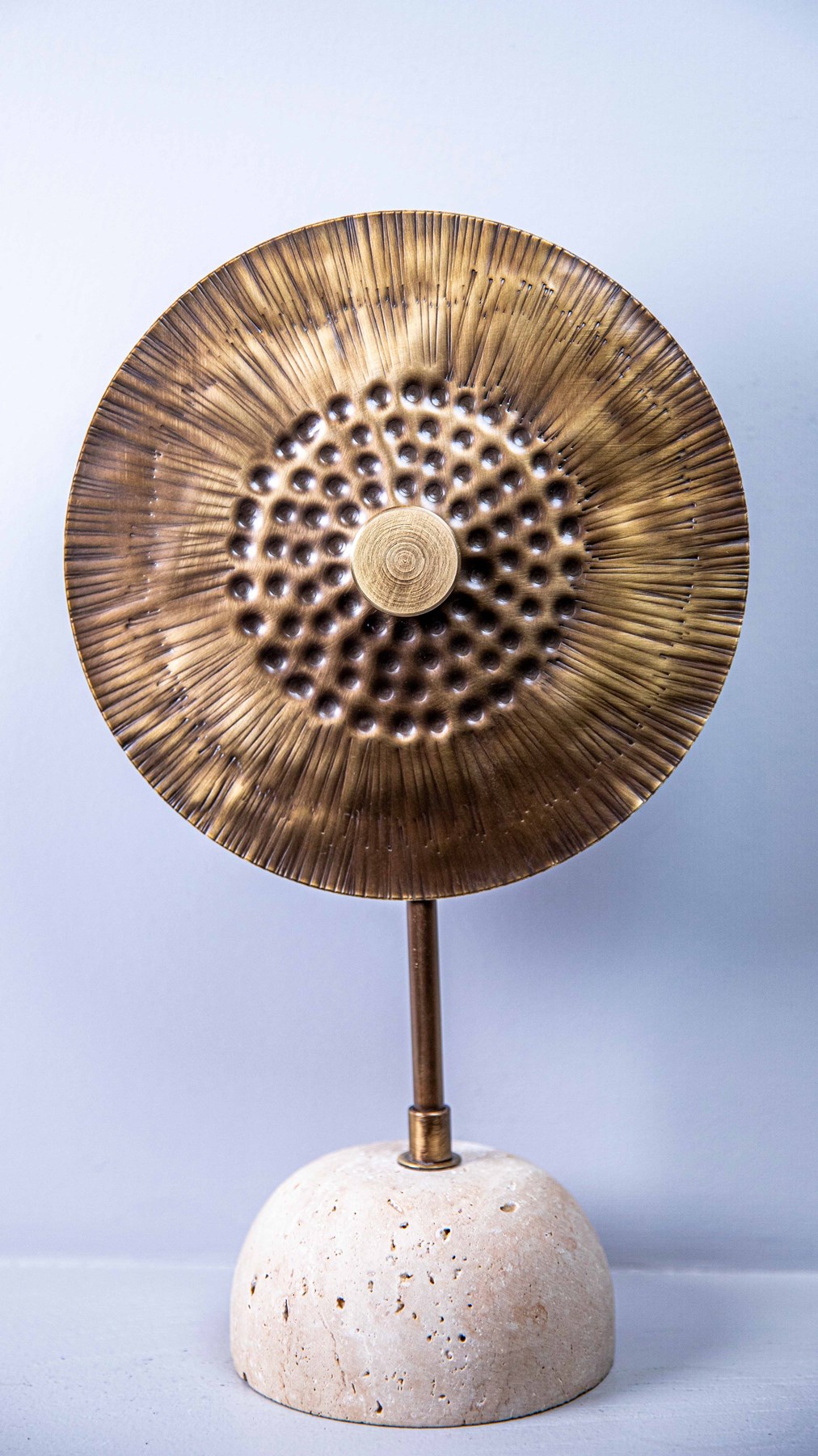 ÜRÜNÜMÜZÜN ALT KISMI TRAVERTEN MERMER,ÜST KISMI EL DÖVMESİ METALDİR.